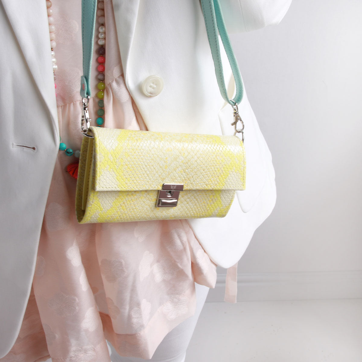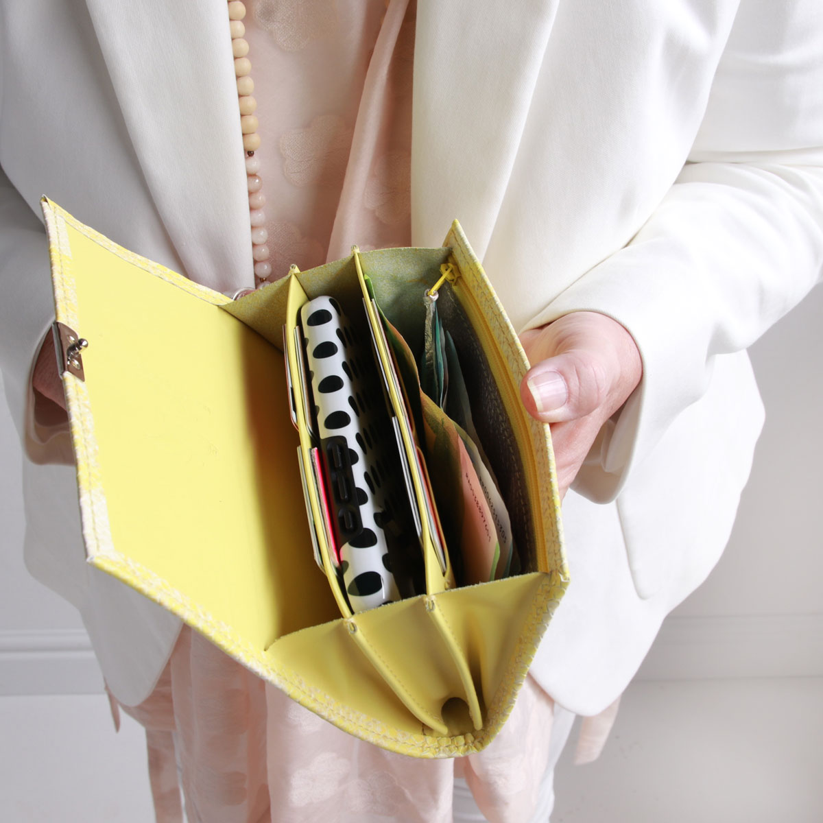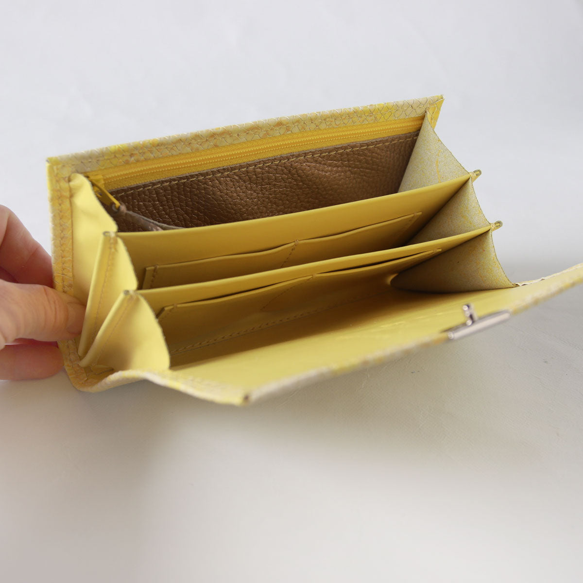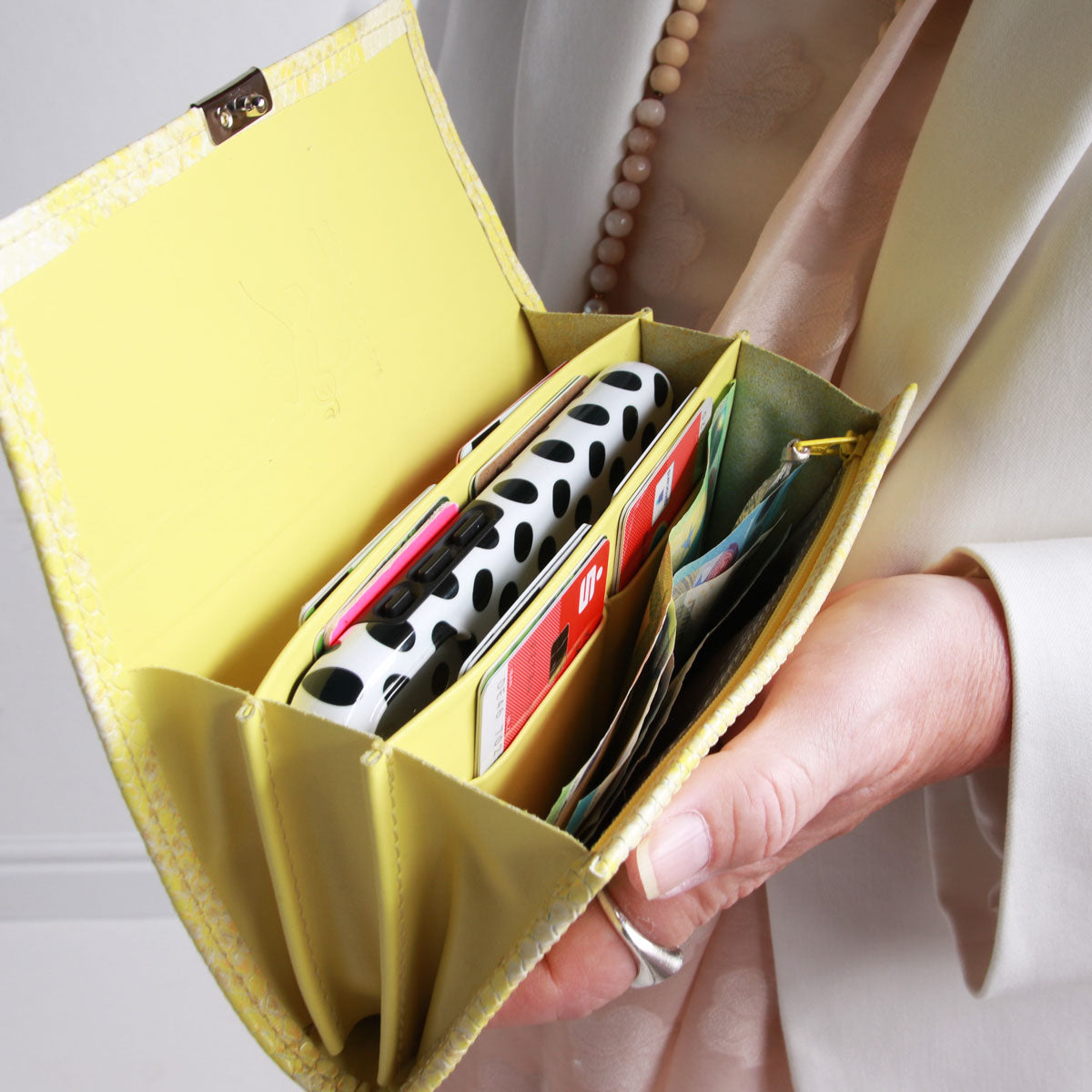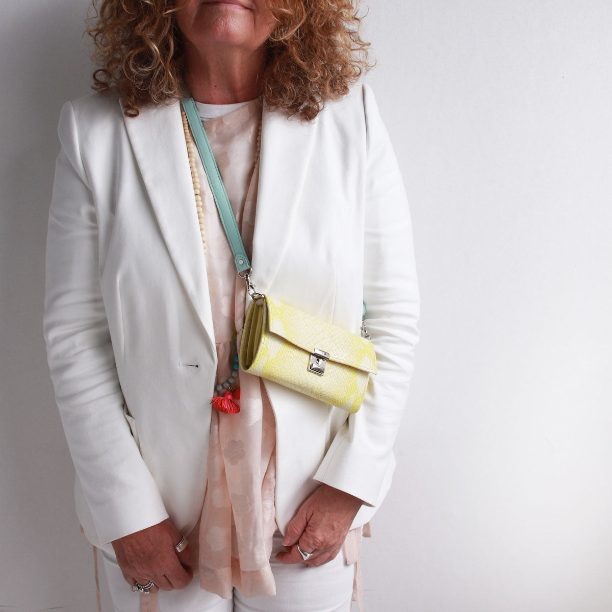Innentasche: Leder Gelb, Weißgold Glitzer
