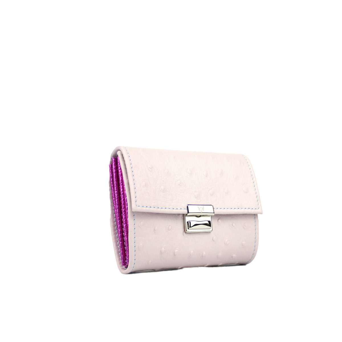 Außenleder: softes Leder in zartem Flieder (leider sehr schwer zu fotografieren aber in Natura wunderschön) mit Straussenprägung