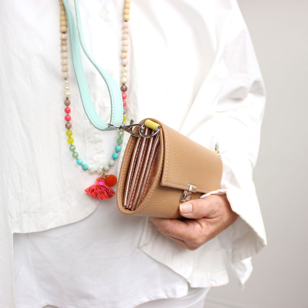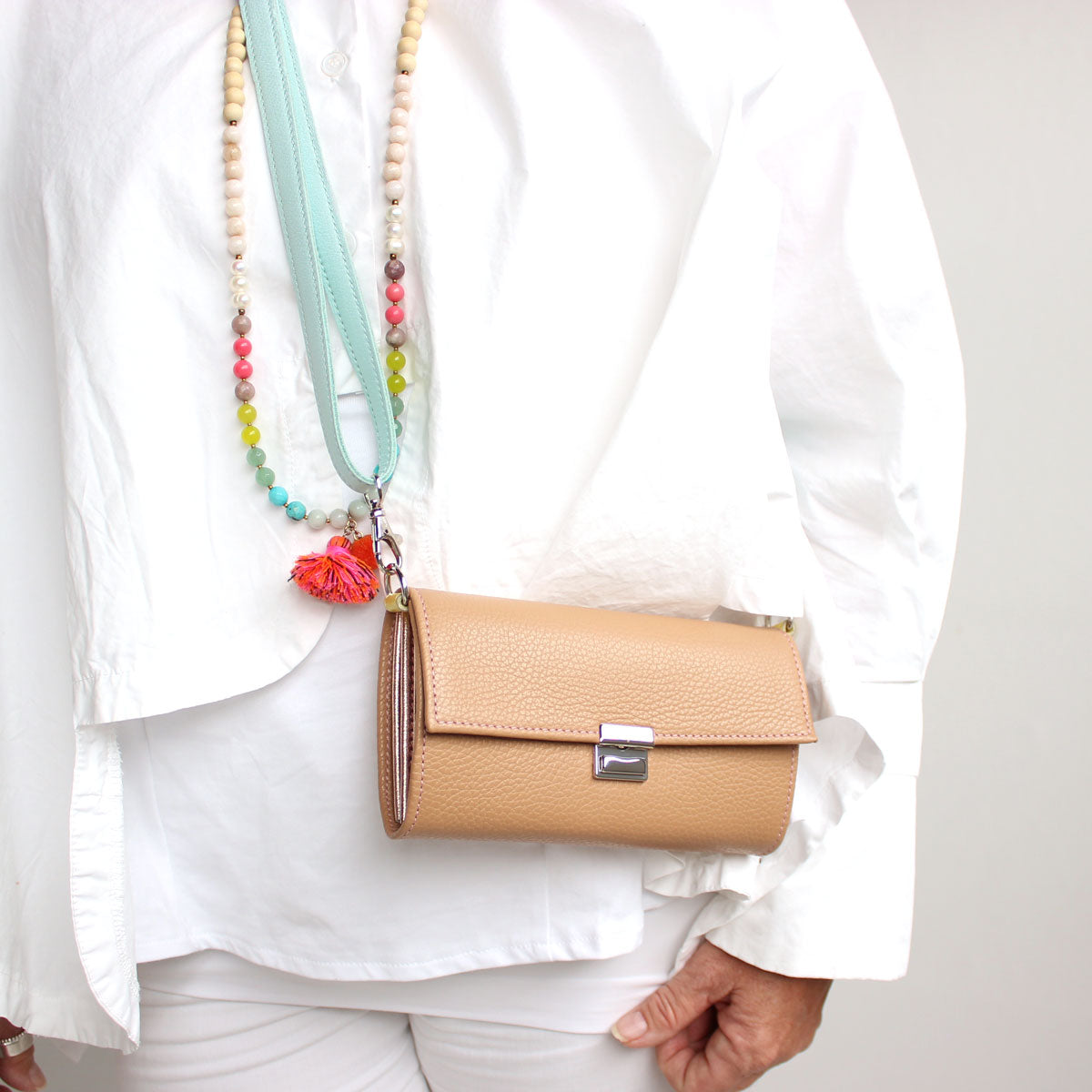Und wenn du die Hände frei haben willst, dann gönn dir einen Strap und einen Riemen dazu und mach aus deiner Elli eine Crossbody!