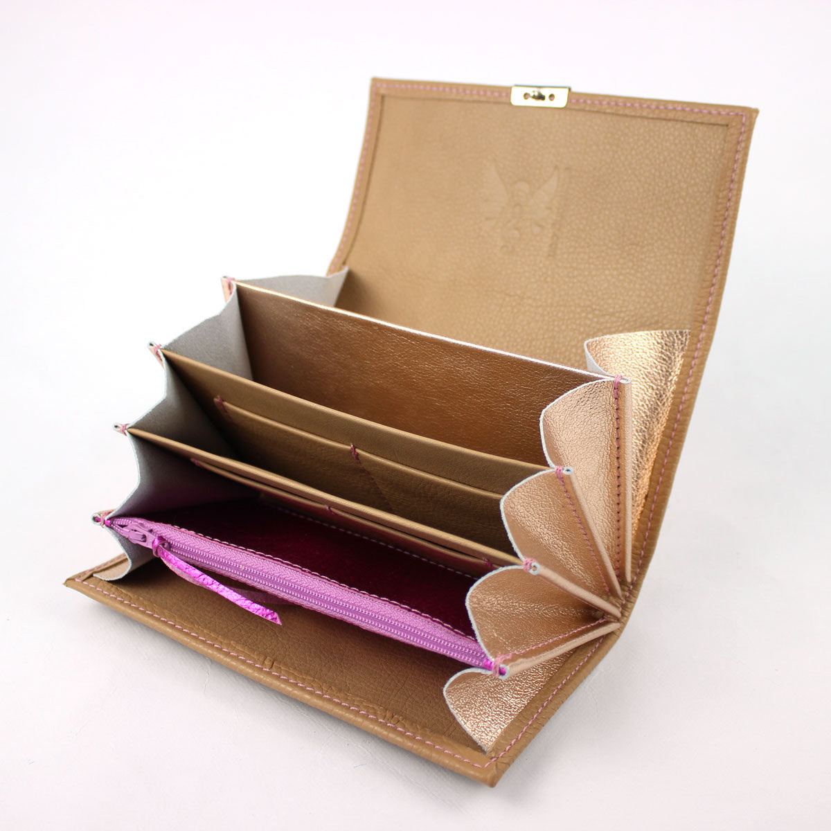 Innentasche: Leder Haselnuss, Rosegold, Pink Glitzer