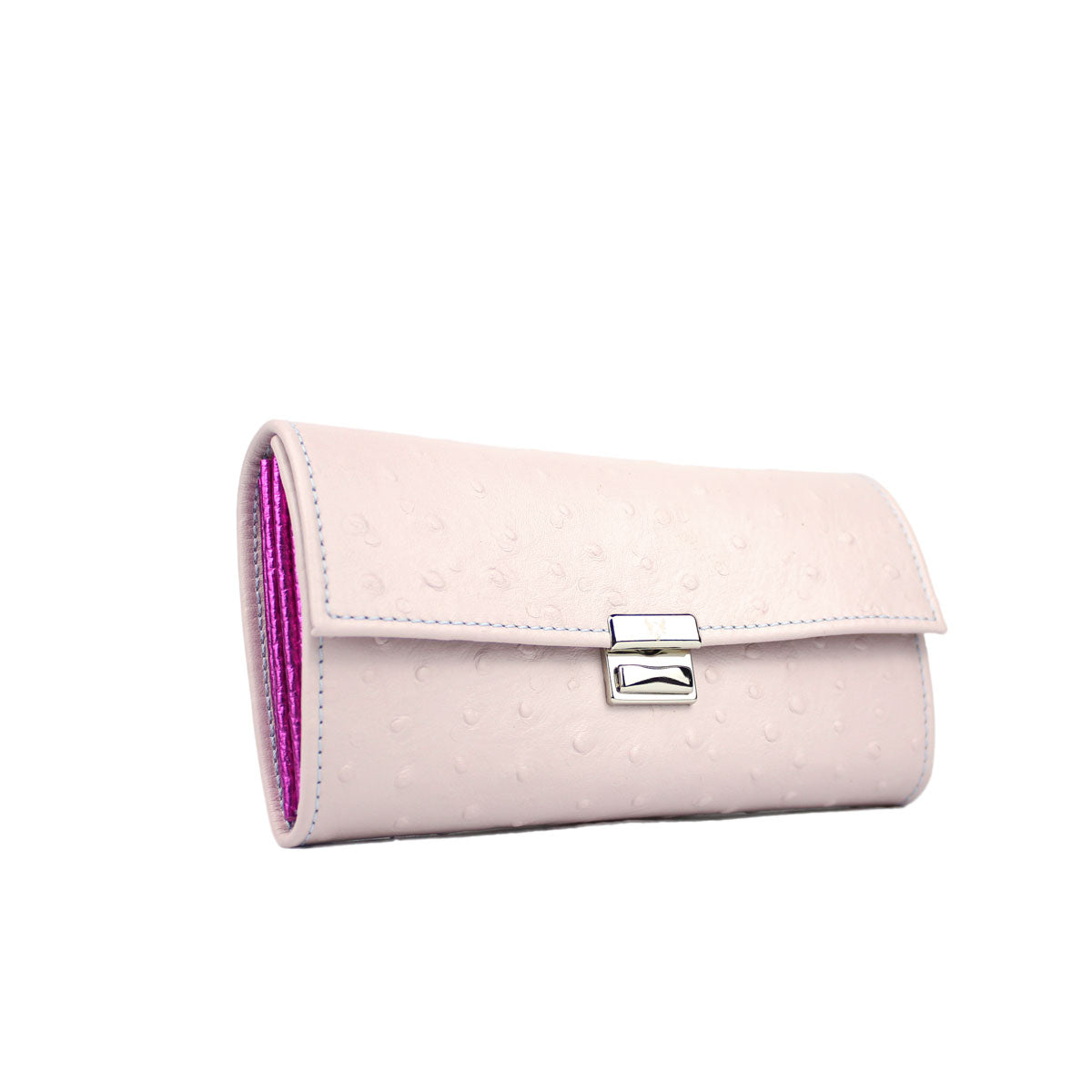 Außenleder: softes Leder in zartem Flieder (leider sehr schwer zu fotografieren aber in Natura wunderschön) mit Straussenprägung