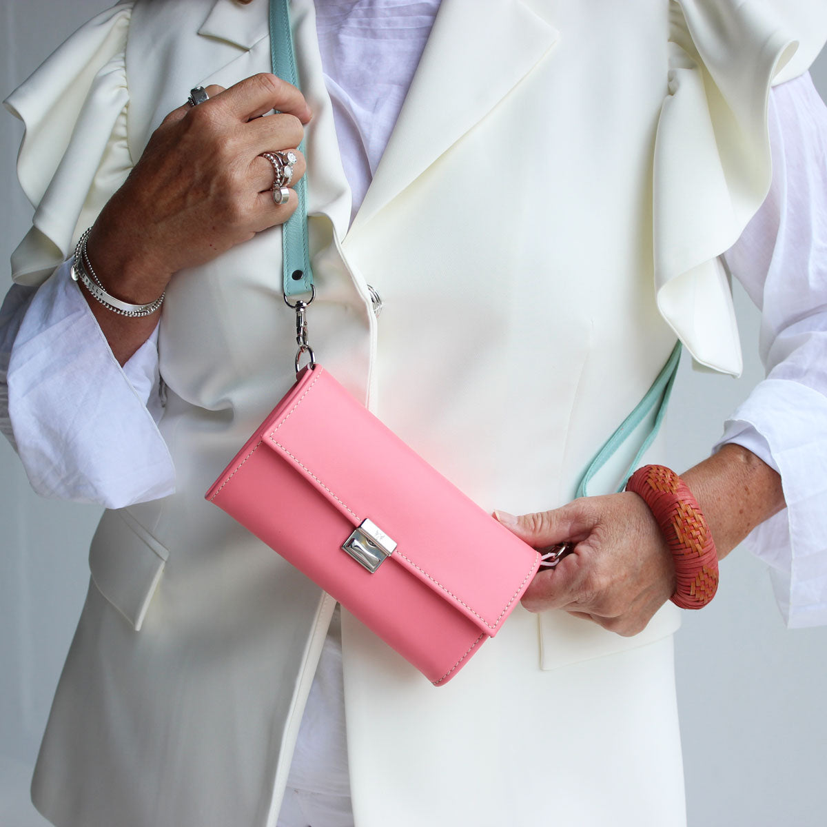 Und wenn du die Hände frei haben willst, dann gönn dir einen Strap und einen Riemen dazu und mach aus deiner Elli eine Crossbody!