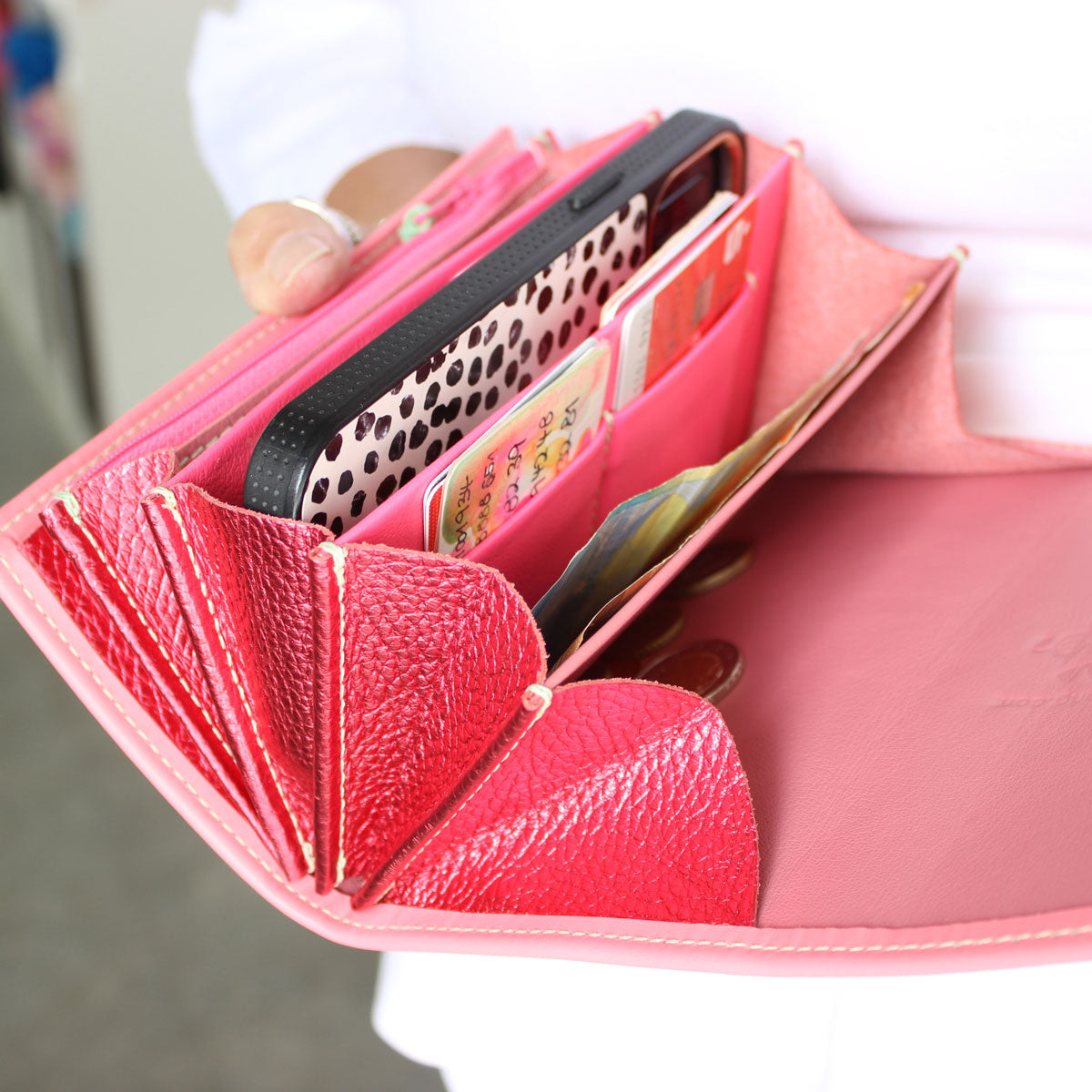 Du wirst überrascht sein, wie viel Platz es für all deine Karten gibt und wie wunderbar es ist, in das große Münzfach einfach hineinzugreifen.