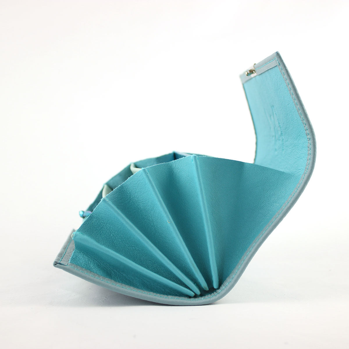 Außenleder: Leder Minze (abgetöntes Mint-Hellblau), grobporig, matt, unempfindlich