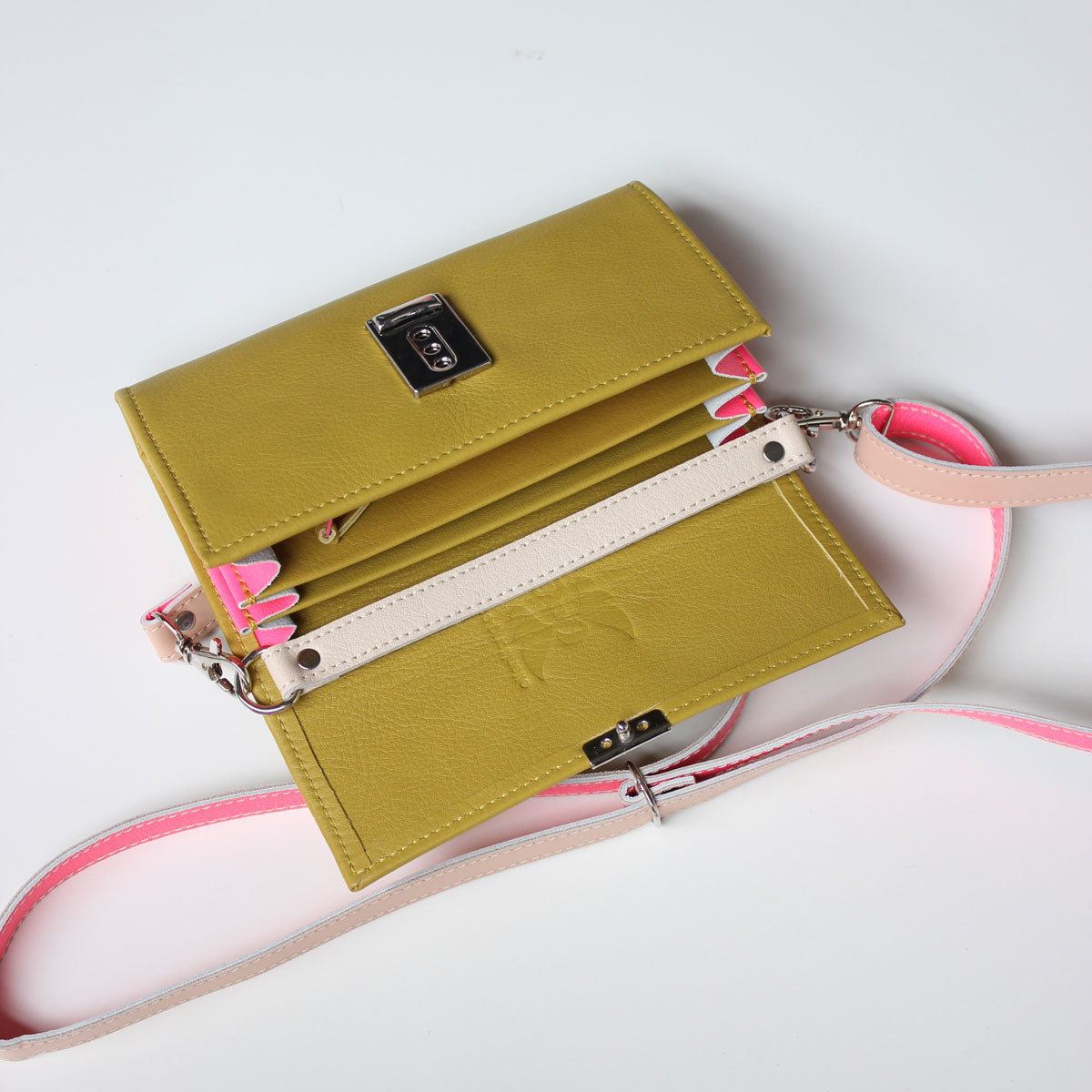 Du kannst jede Lou Geldbörse zu einer Umhängetasche machen. Leg einfach einen Strap in derselben Größe wie deine Lou unter den Deckel ein und schließe die Geldbörse. Hänge dann einen langen Riemen an den beiden D-Ringen ein. So vergißt du nie wieder deinen Geldbeutel im Supermarktregal 😉