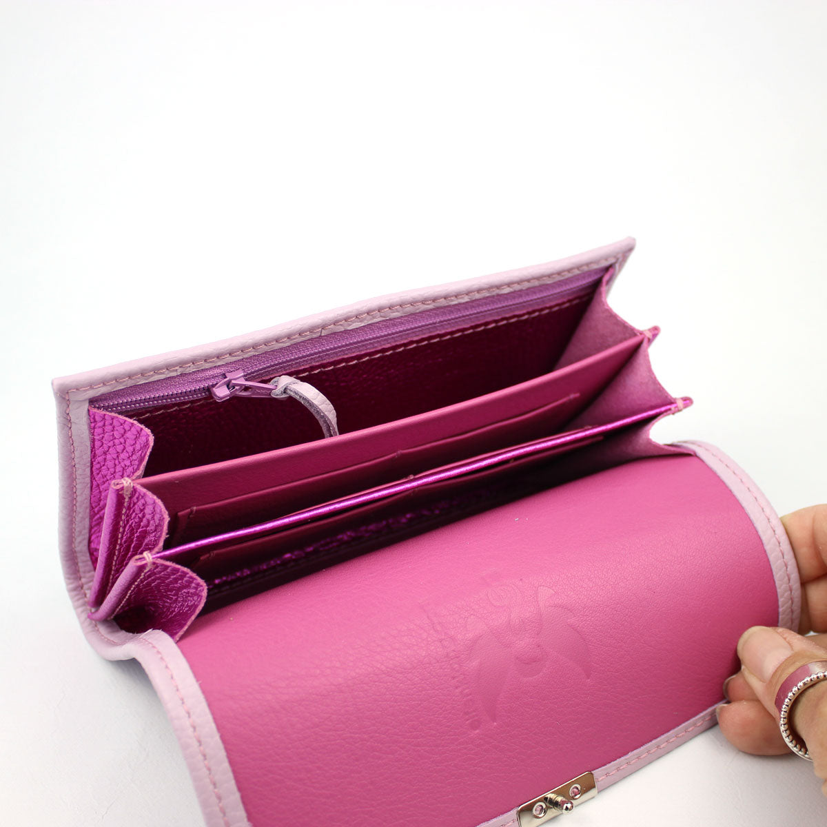 Du wirst überrascht sein, wie viel Platz es für all deine Karten gibt und wie wunderbar es ist, in das große Münzfach einfach hineinzugreifen. Mit 2 Trennstegen hat sie 3 geräumige Fächer für Geldscheine, Karten, Handy oder Sonstiges. Ein Reißverschlussfach hält z.B. Schmuck oder Tabletten griffbereit verschlossen.