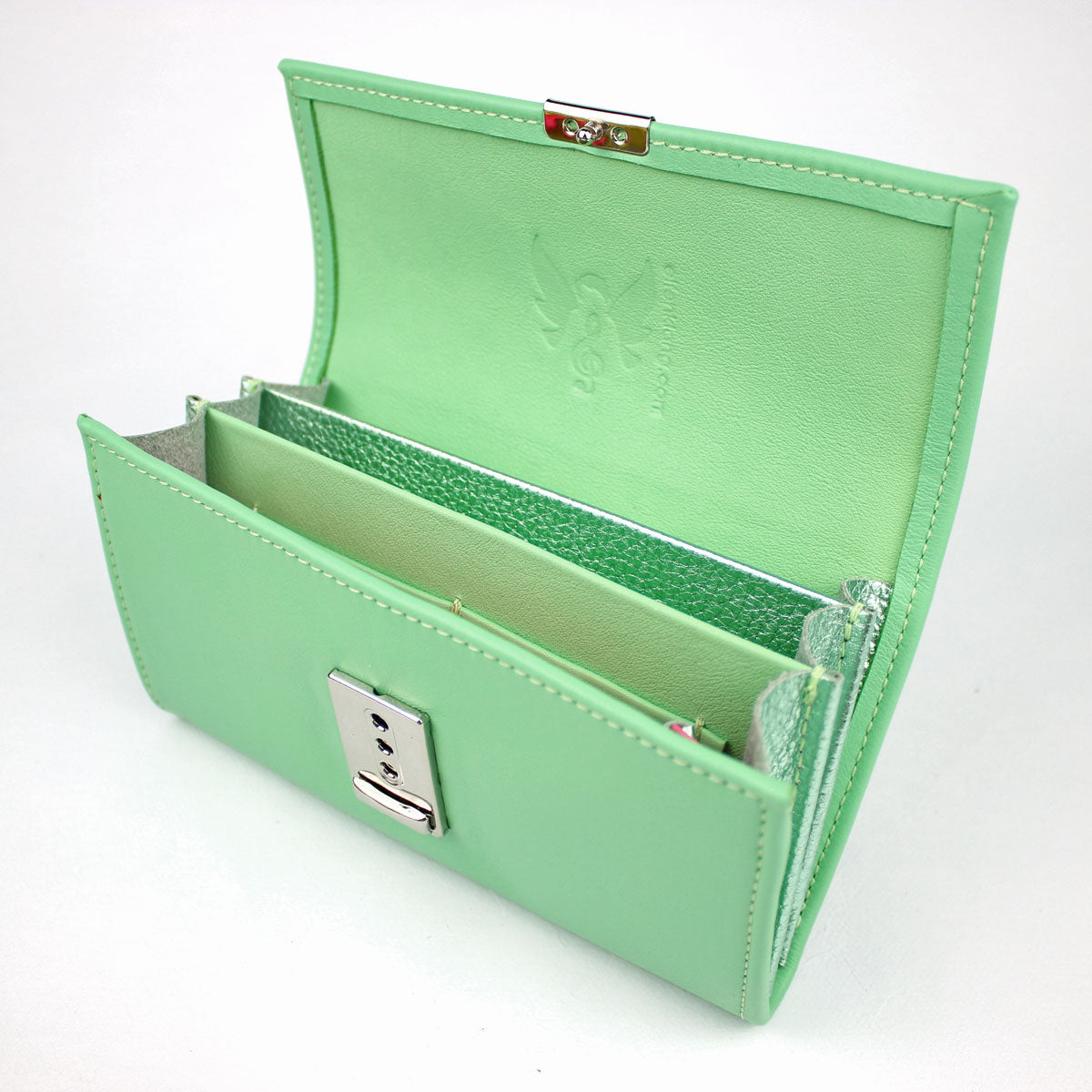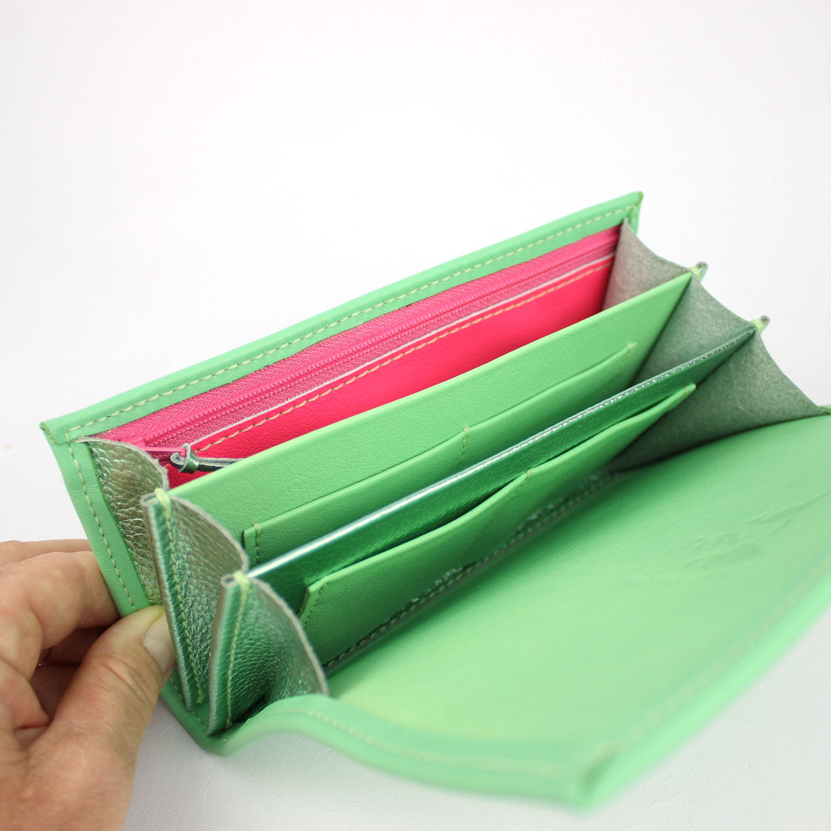 Außenleder: Leder Lind (pastelliges Hellgrün), feinporig, matt, unempfindlich