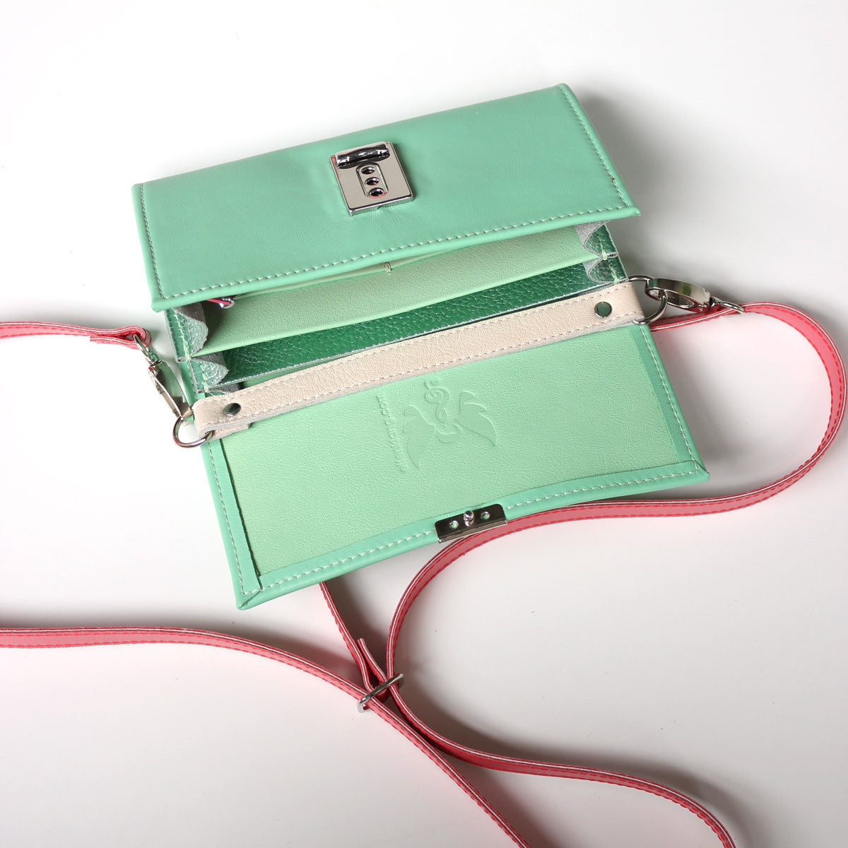 Du kannst jede Lou Geldbörse zu einer Umhängetasche machen. Leg einfach einen Strap in derselben Größe wie deine Lou unter den Deckel ein und schließe die Geldbörse. Hänge dann einen langen Riemen an den beiden D-Ringen ein. So vergißt du nie wieder deinen Geldbeutel im Supermarktregal 😉
