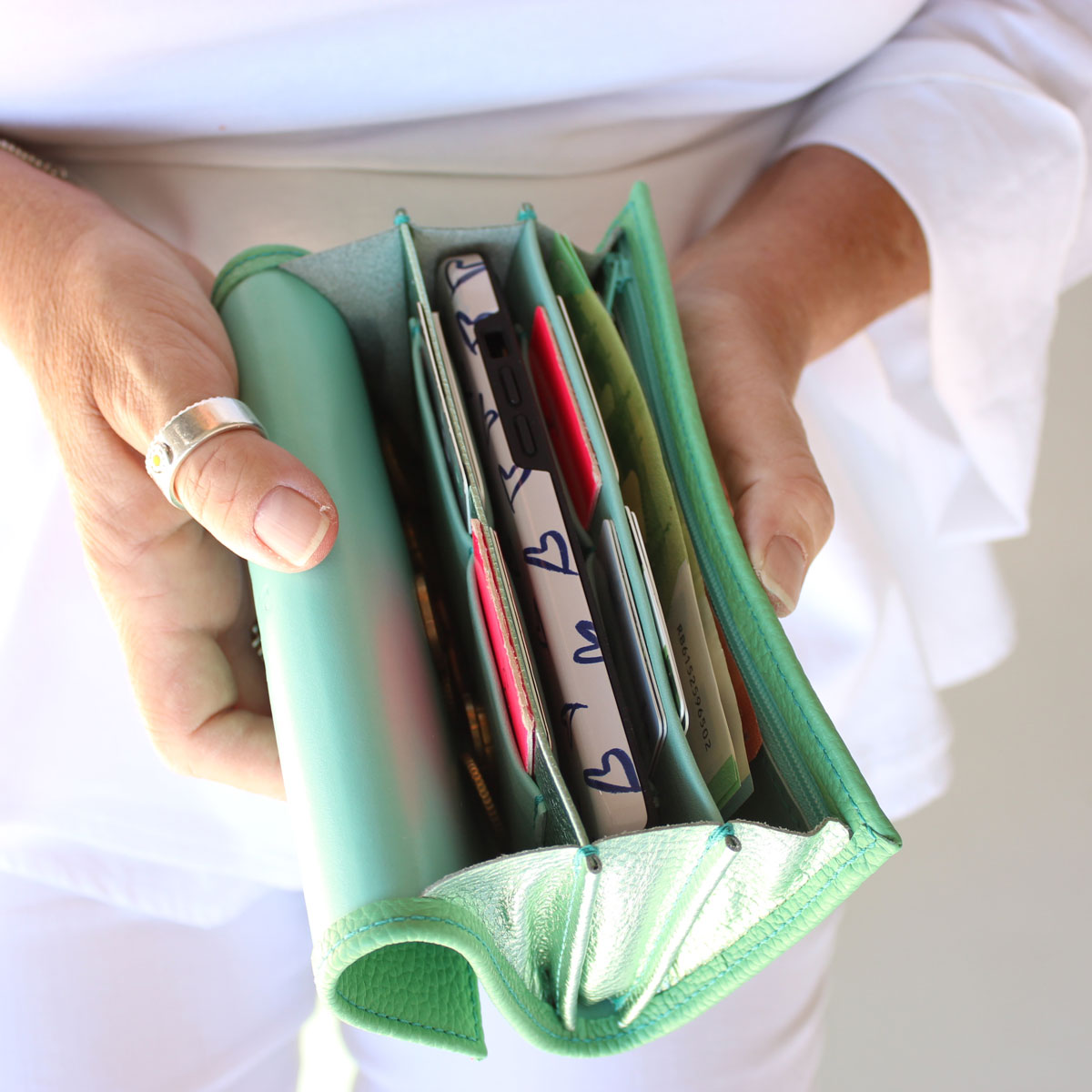 Innentasche: Leder Pool, Anis und Salbei Glitzer
