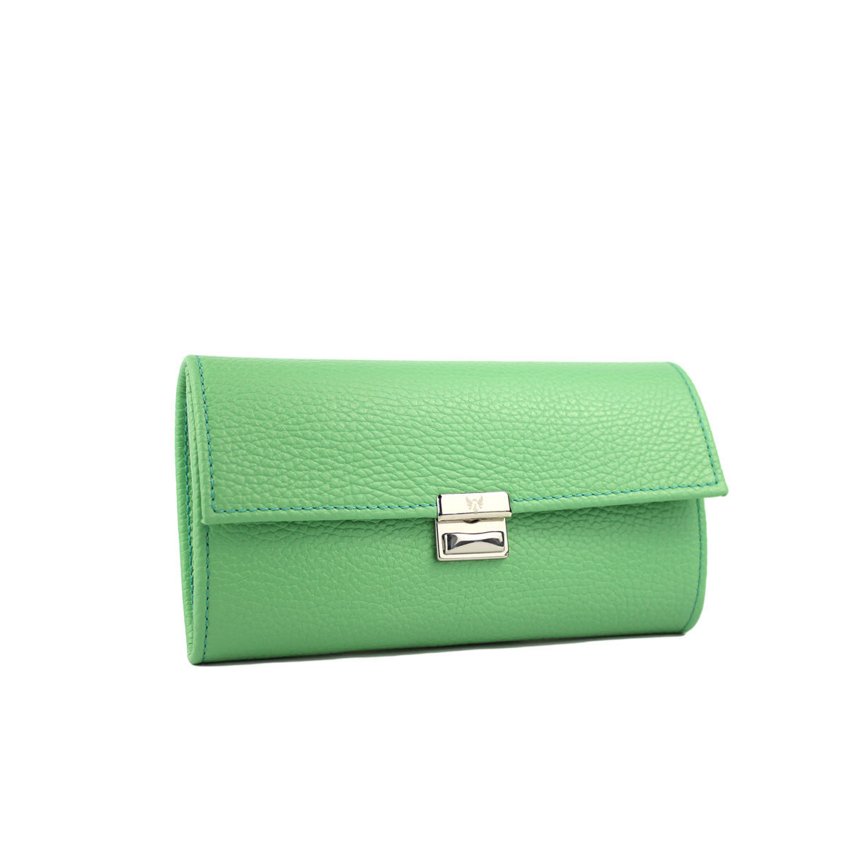Außenleder: Leder Pistazie (kräftiges Grün), grobporig, matt, unempfindlich