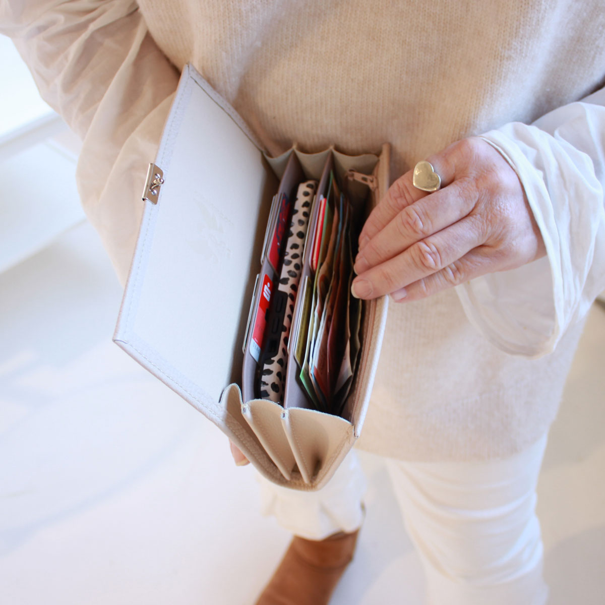 Leder lässt sich am besten mit reinem Schmutzradierer aus dem Drogeriemarkt reinigen, besonders das Münzfach unserer Lou erstrahlt damit wieder in neuem Glanz.